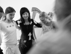 "Déjà 20 ans que ces stages existent grâce à vous. Je vous remercie. Au rendez-vous, des nouveaux morceaux pour la harpe, des chansons pour les chanteurs et les harpistes et des danses nouvelles pour le plaisir. Et pour les stages en Bretagne, je tiens à continuer de cuisiner pour vous mes petits plats grecs. Comme vous le savez pour moi l'enseignement passe par le plaisir, les parfums, le rire, l'échange et le partage de ces moments où le seul vrai effort que nous devons faire c'est d'être nous-même."